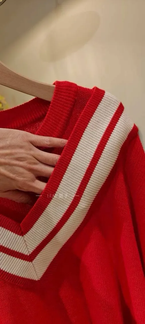 設計師圓領V領雙層針織衫[直播編號048]