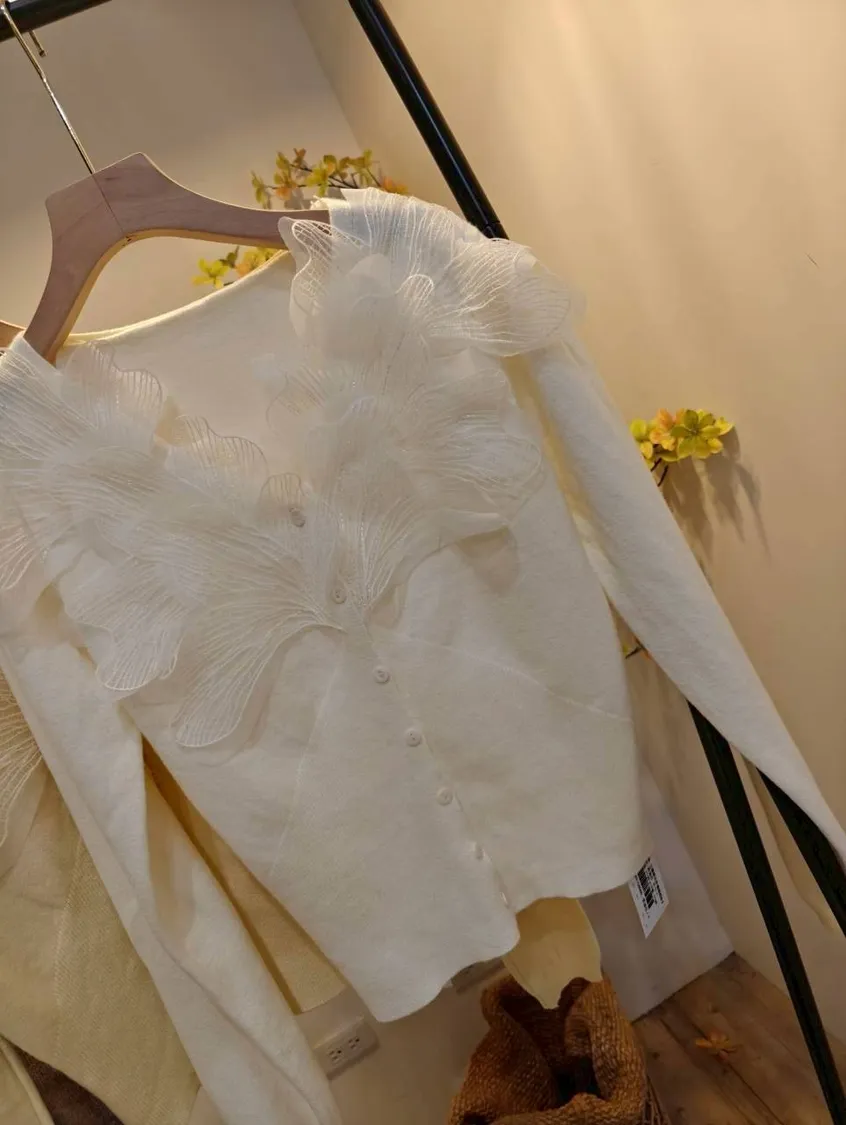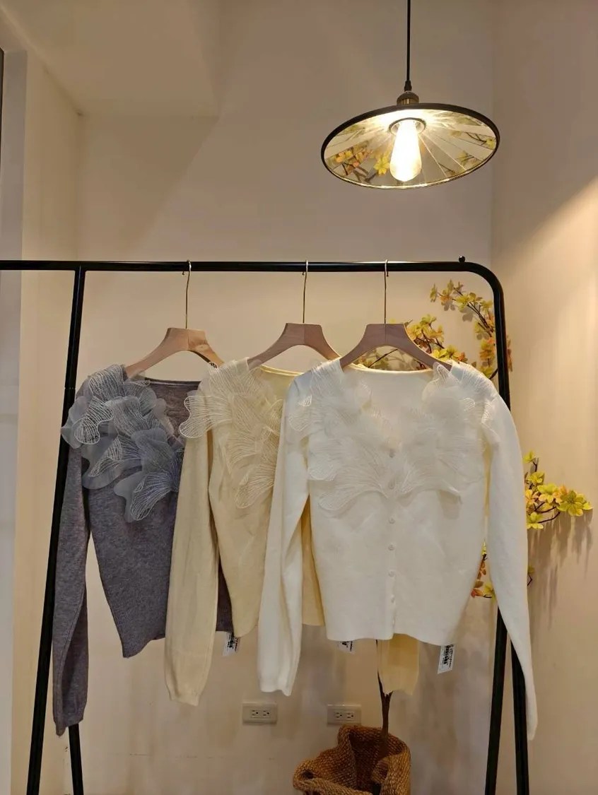 立體蝶花針織開襟針織毛衣+外[直播編號092]