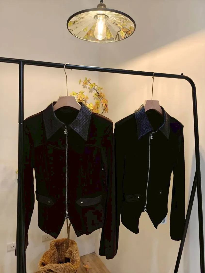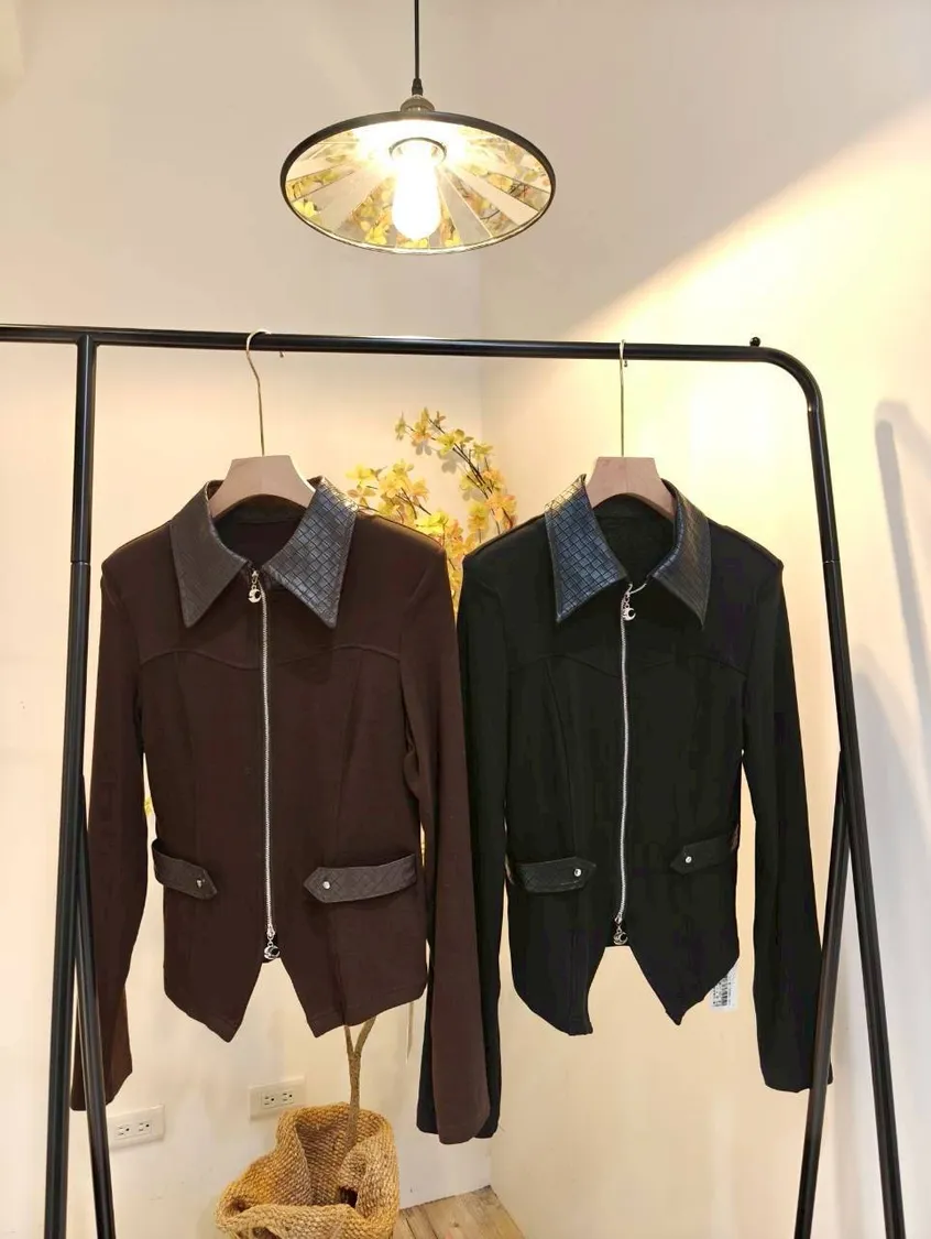 英國領皮革超激瘦雙向拉鍊超彈T[直播編號065]