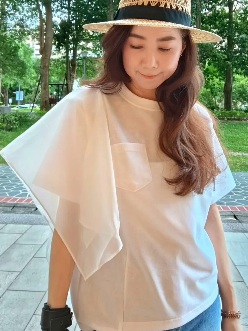 搭配側袖質感不刺膚紗袖