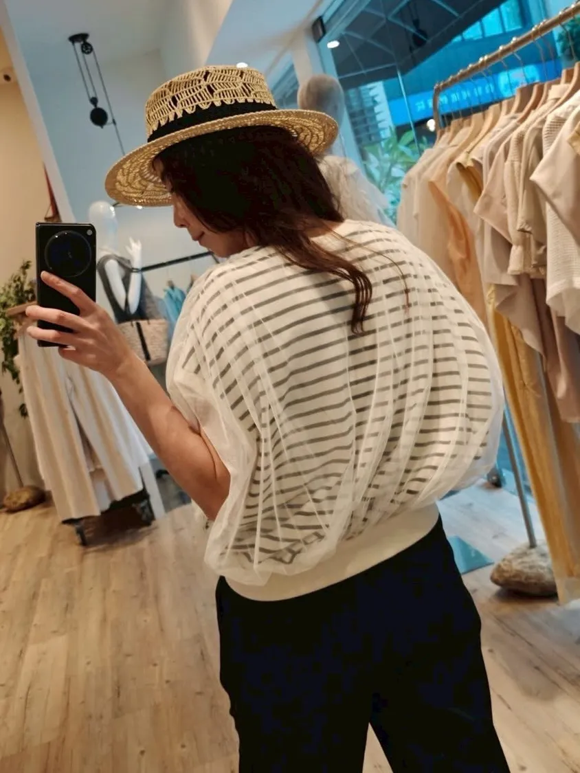 外拼接薄透的歐根紗 , 柔軟不刺膚