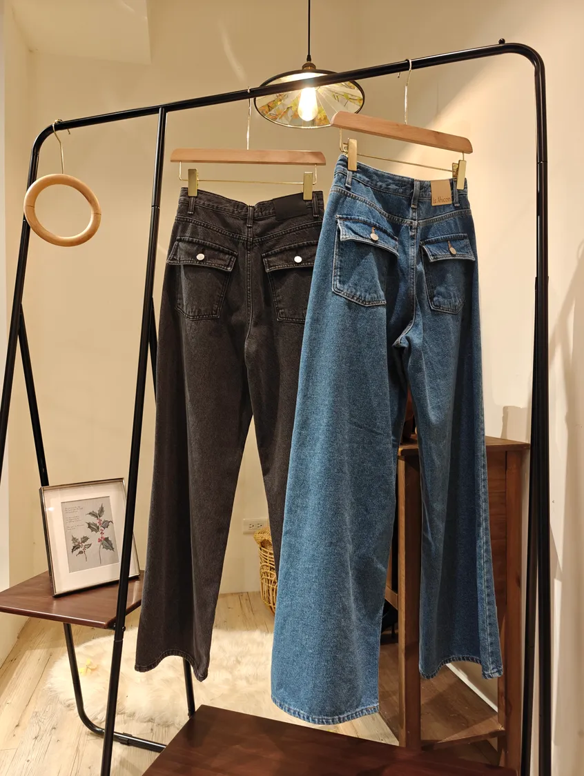 設計師瘦翻後蓋袋棉單寧牛仔褲[直播編號046]
