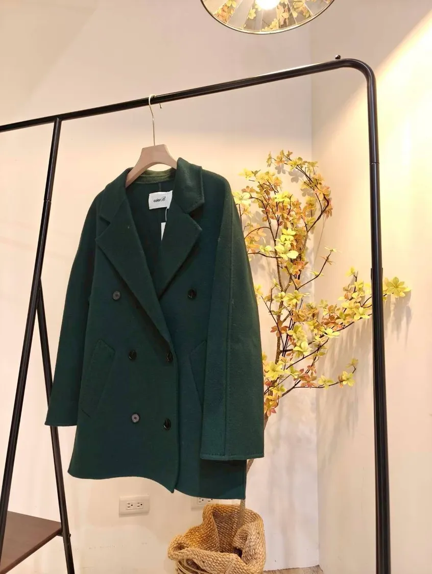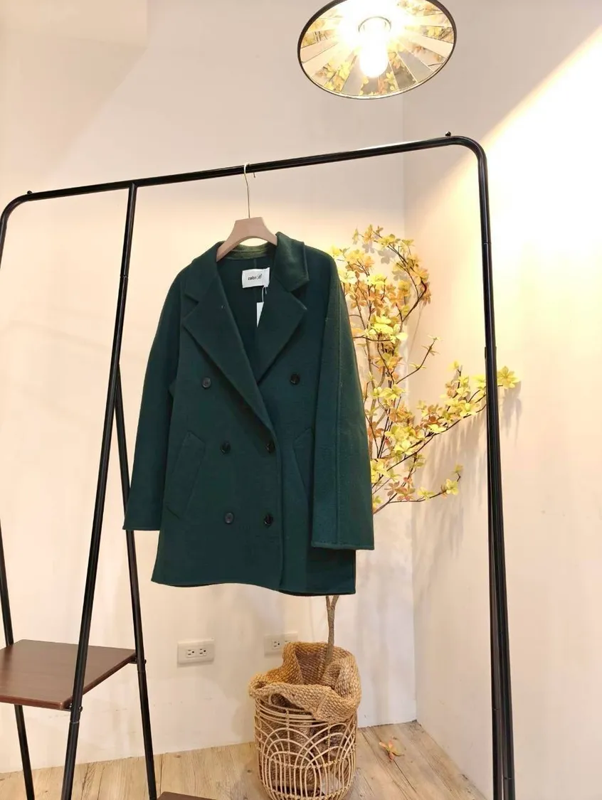 設計師100%澳洲羊毛剪裁綠手工短大衣[直播編號069]