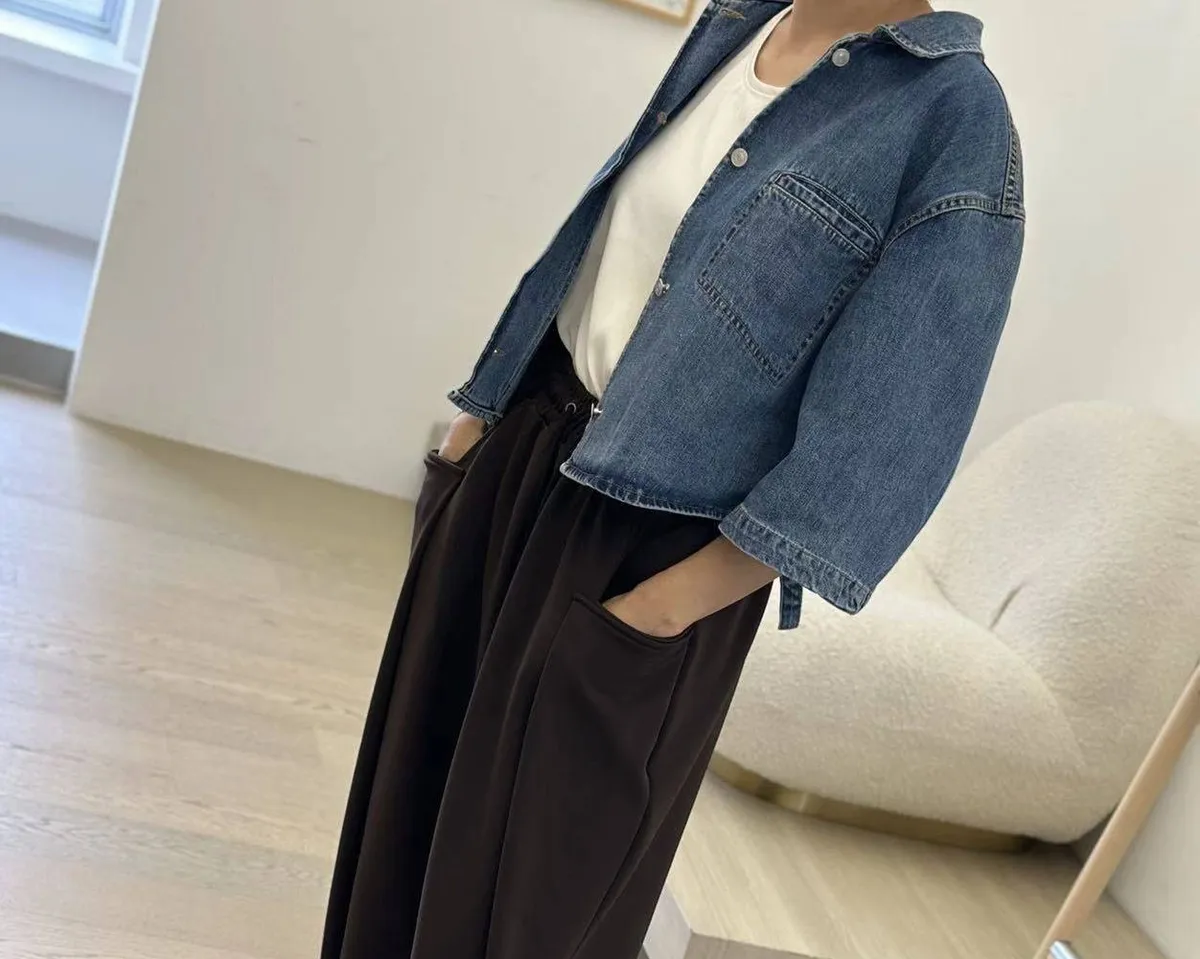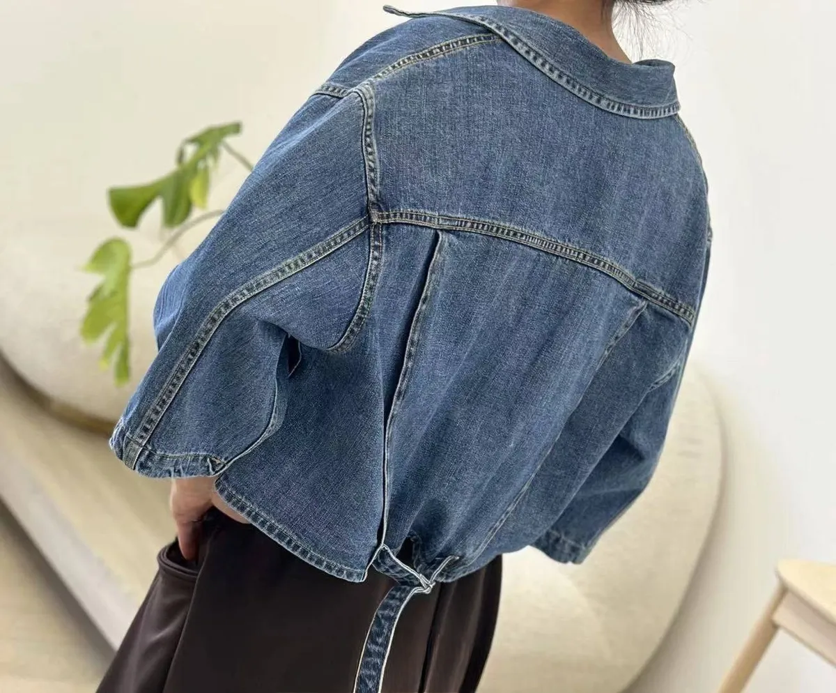 設計師質感家剪裁半袖牛仔短外[直播編號052]
