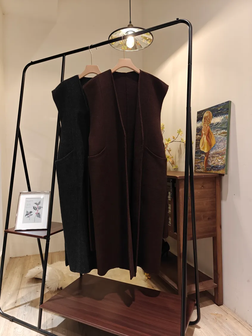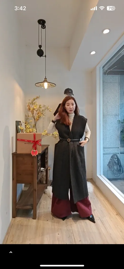 68%手工超棉細緻羊毛長綁帶背心[直播編號025]