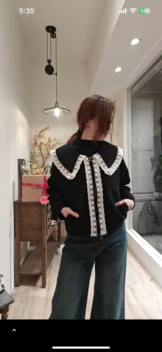 韓國大領蕾絲厚磅親膚毛呢拉鍊外[直播編號060]