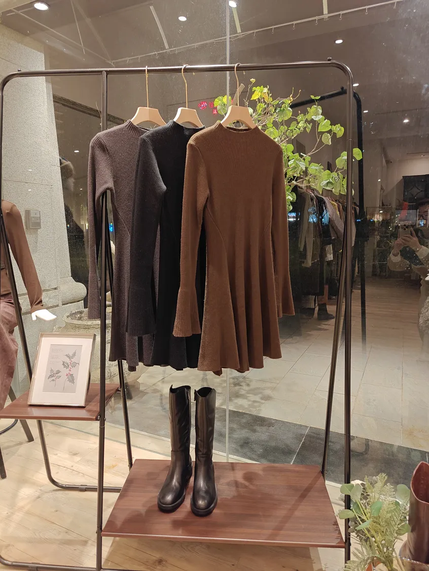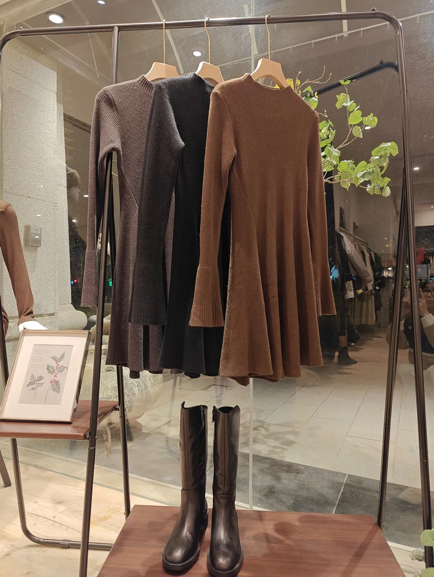 韓國設計師剪裁坑紋微領袖傘腰瘦洋裝[直播編號064]