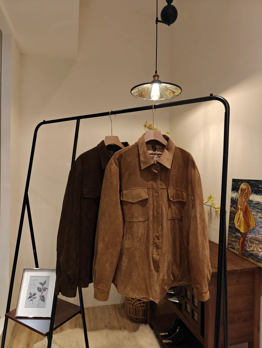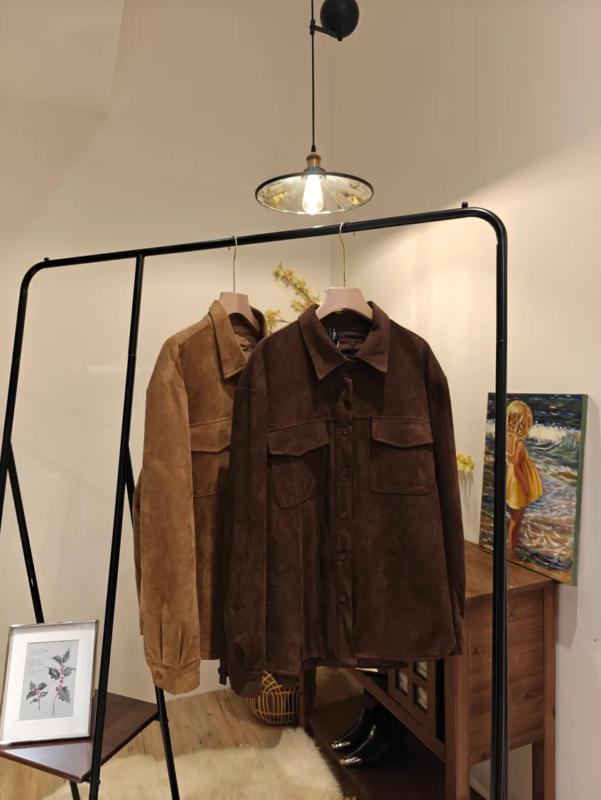 法式大地色調內鋪菱格棉襯衫