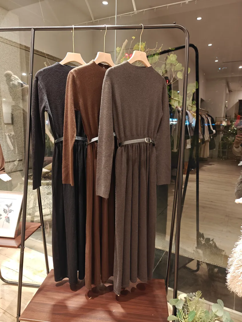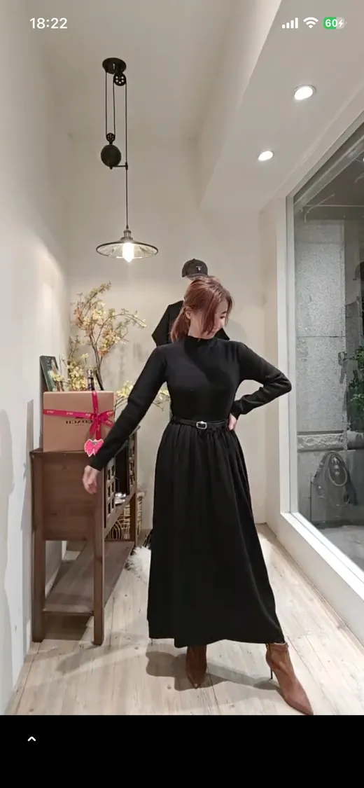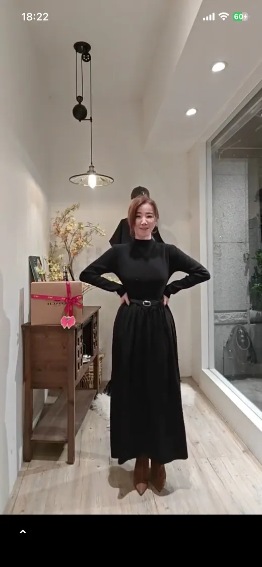 設計師五釦火山領厚磅挺棉針織長洋裝[直播編號065]