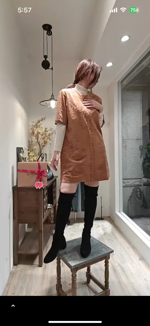 波西米亞鉚釘軟麂皮短洋裝[直播編號063]