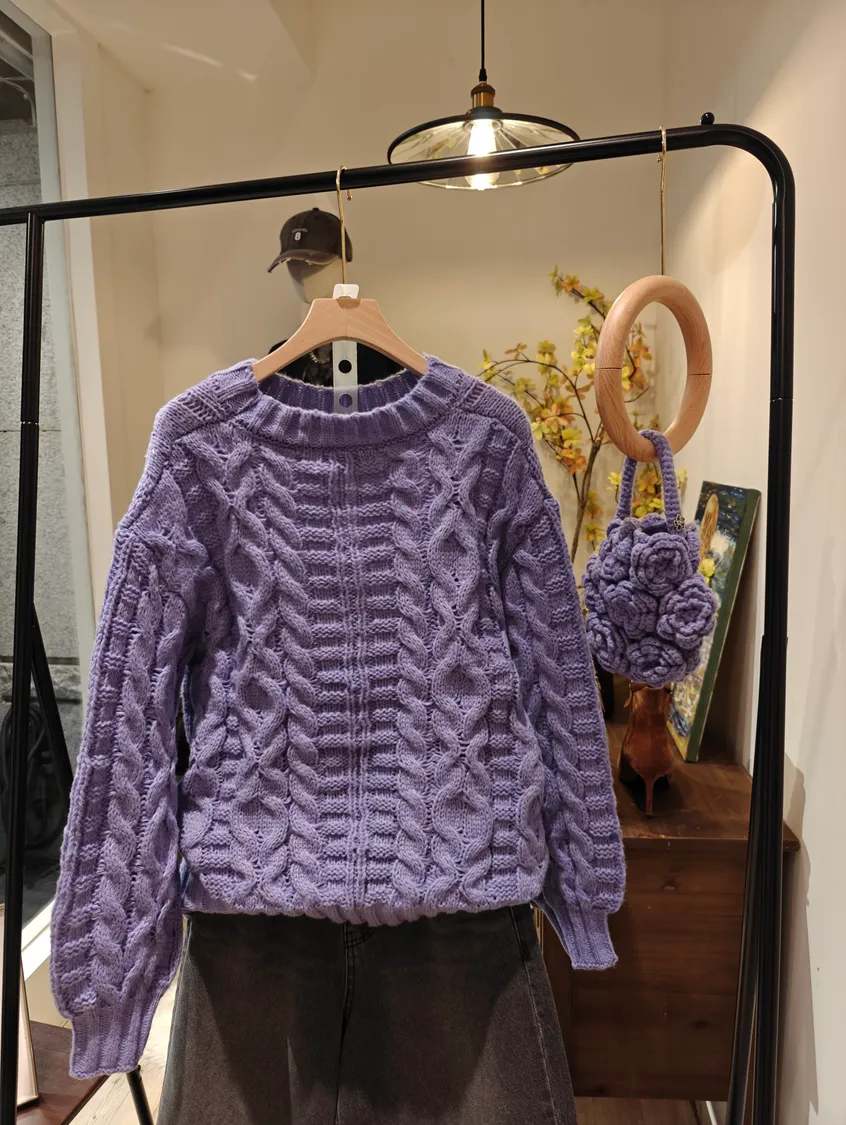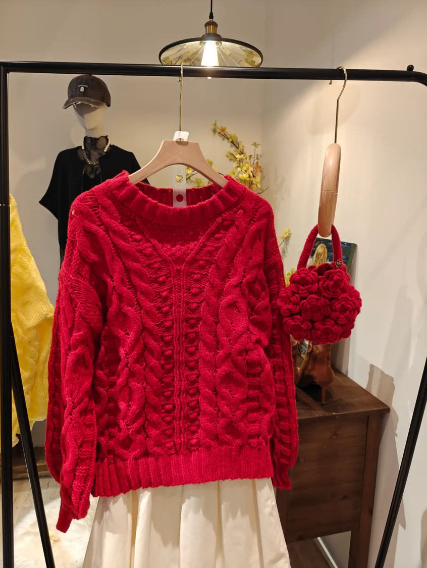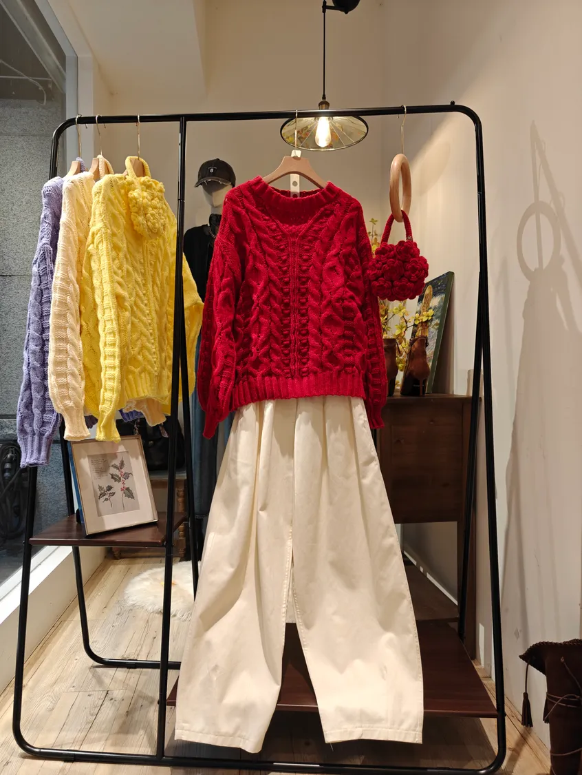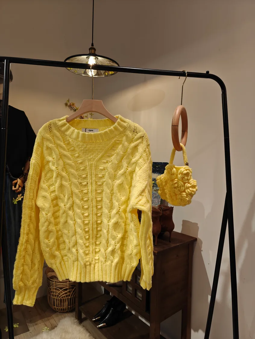設計師收藏家飽和色調粗針麻花包包毛衣