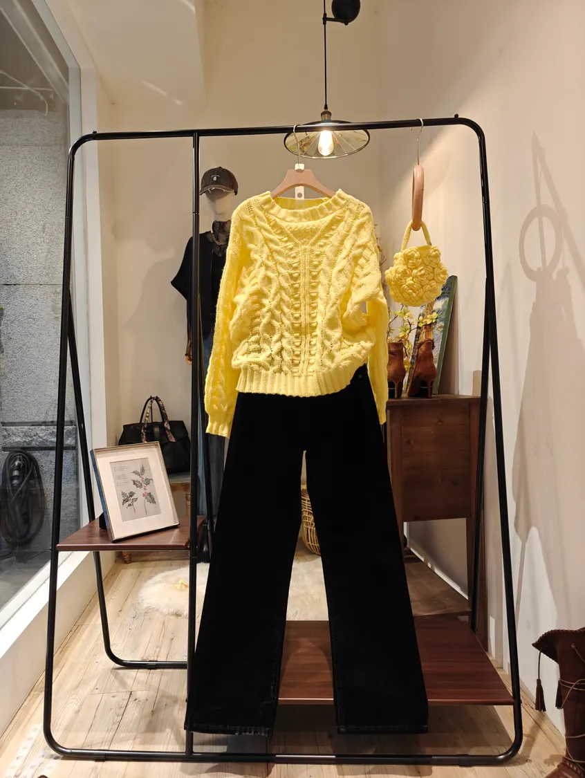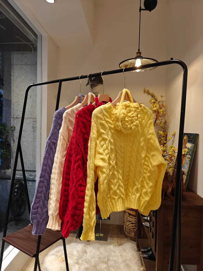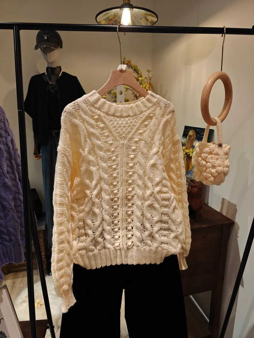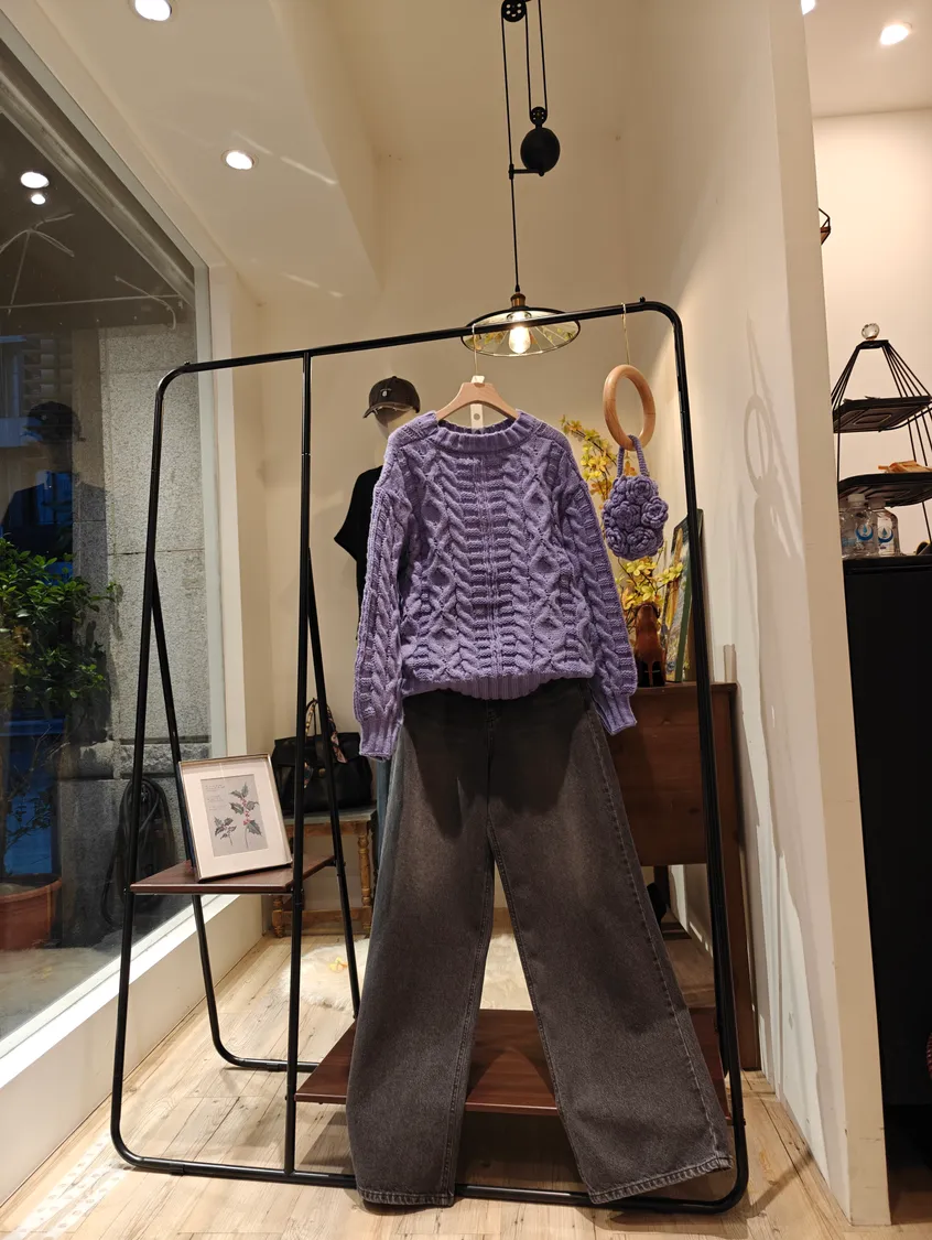 設計師收藏家飽和色調粗針麻花包包毛衣