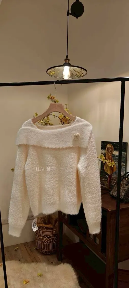 韓國氣質類斜肩領片毛衣[直播編號020]