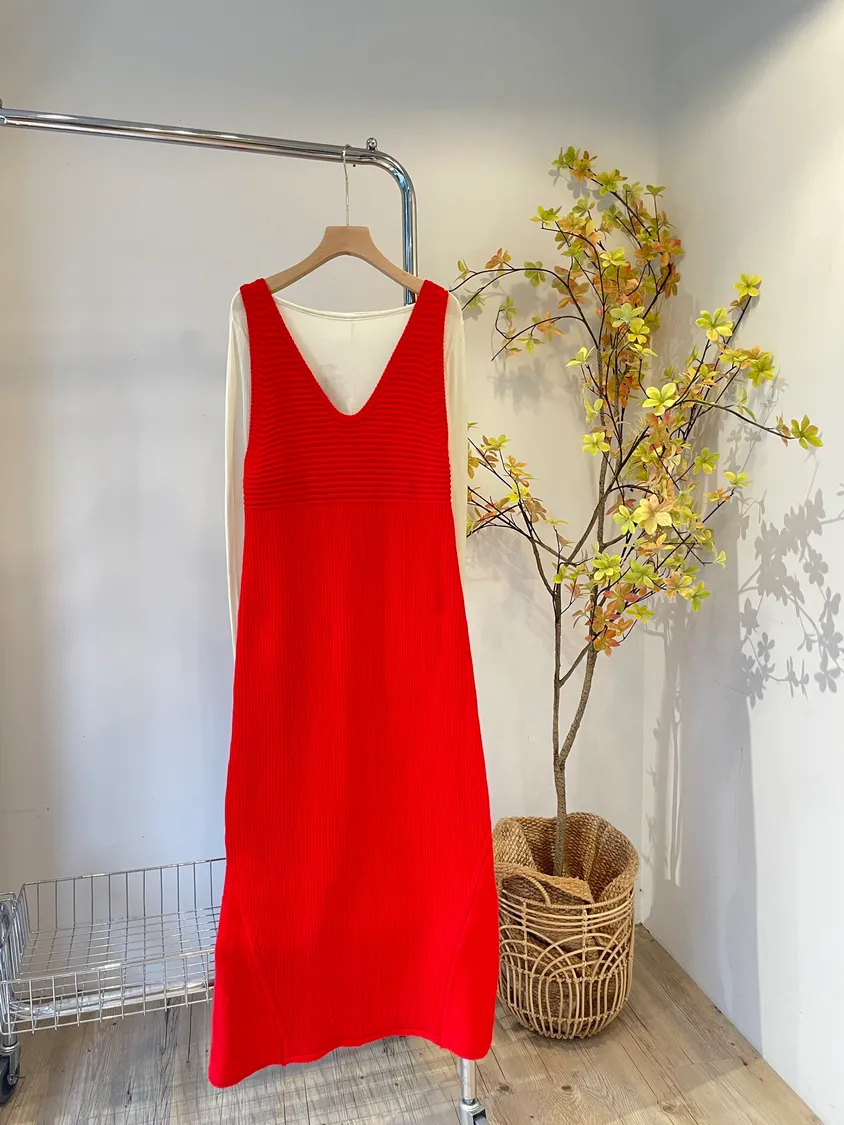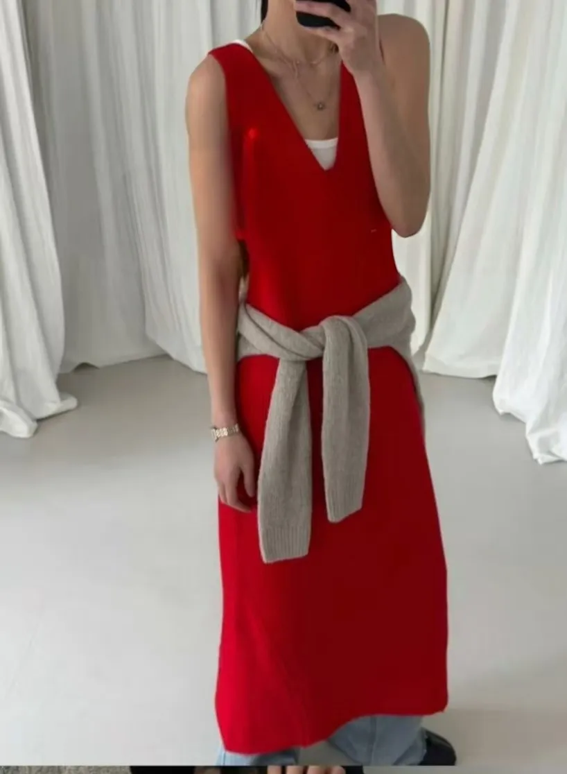 設計師紅色交叉粗針針織裙