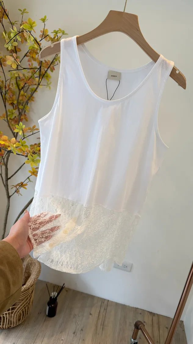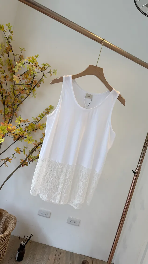 設計師巨純好棉U領下接釦蕾絲背心
