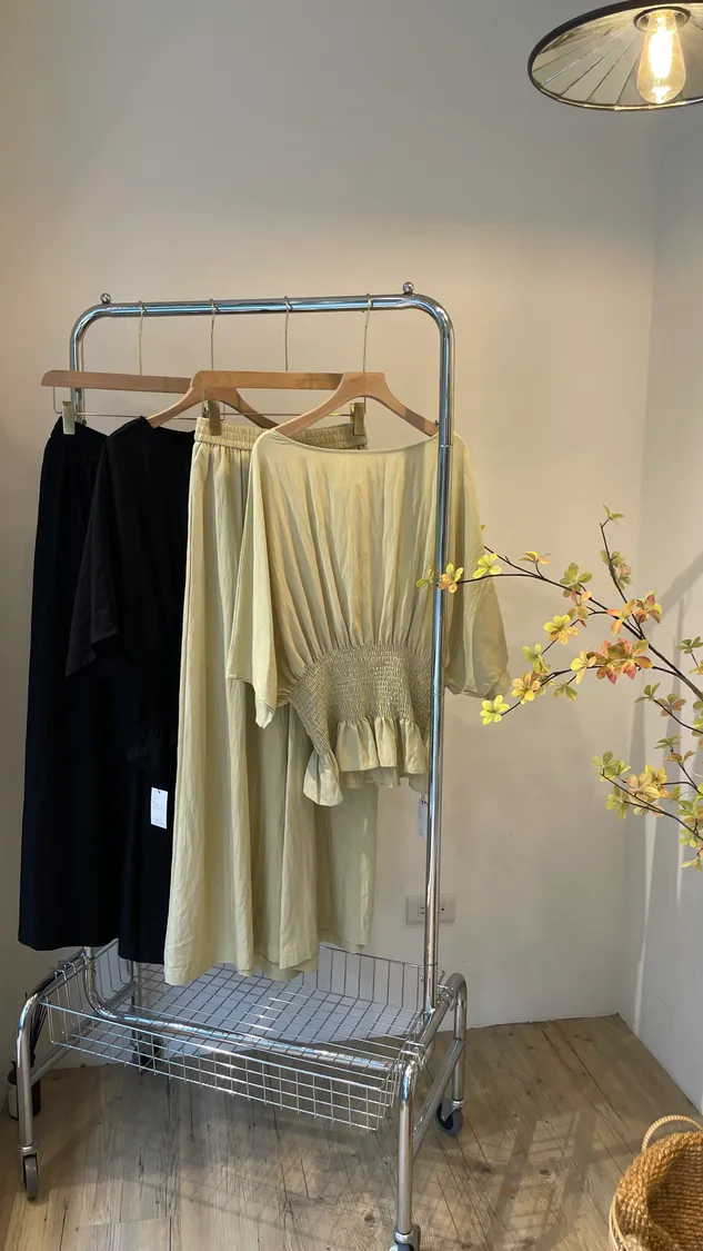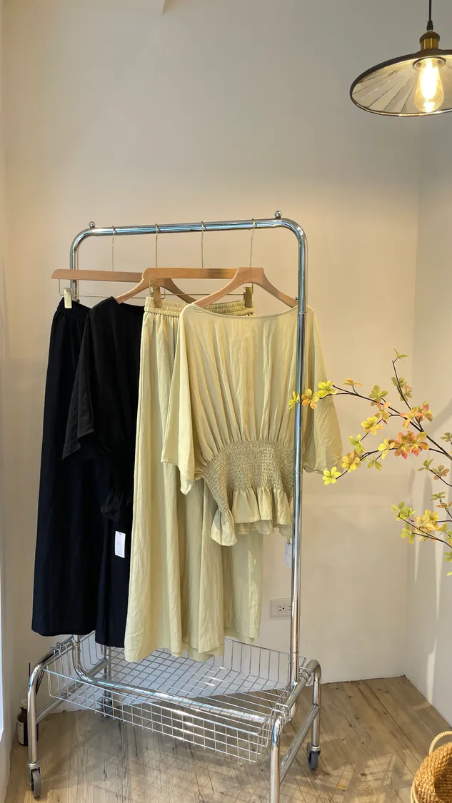紡墜質腰縮鬆糕套褲裝