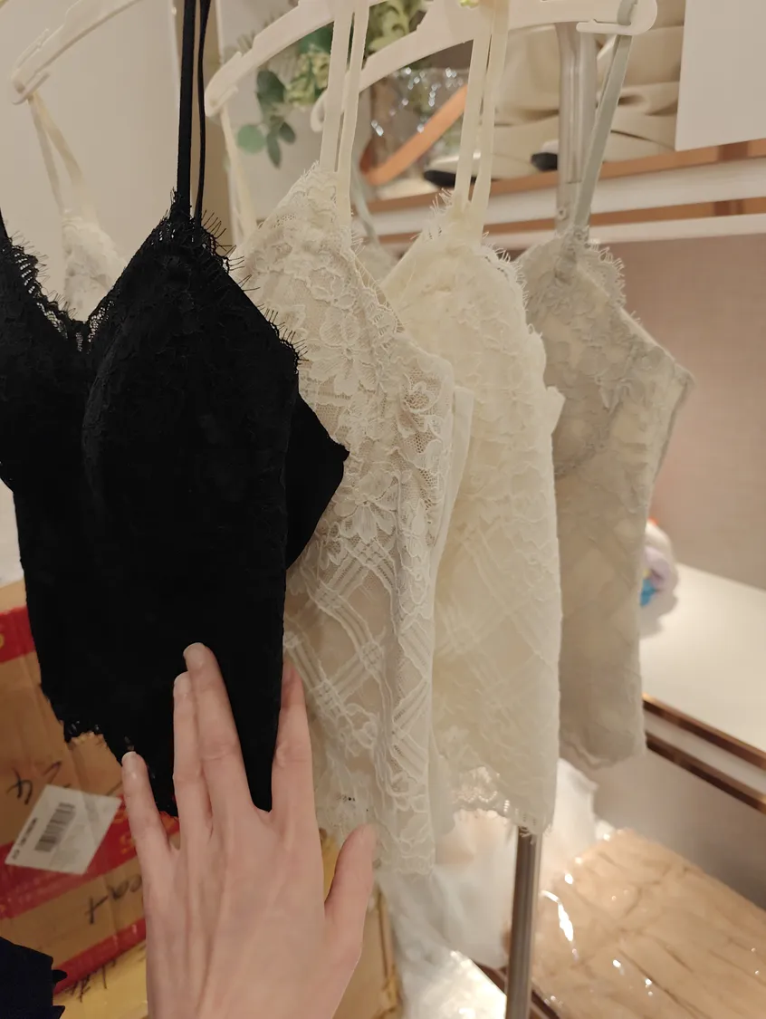 法式冰絲菱格交錯蕾絲肩調整小可愛